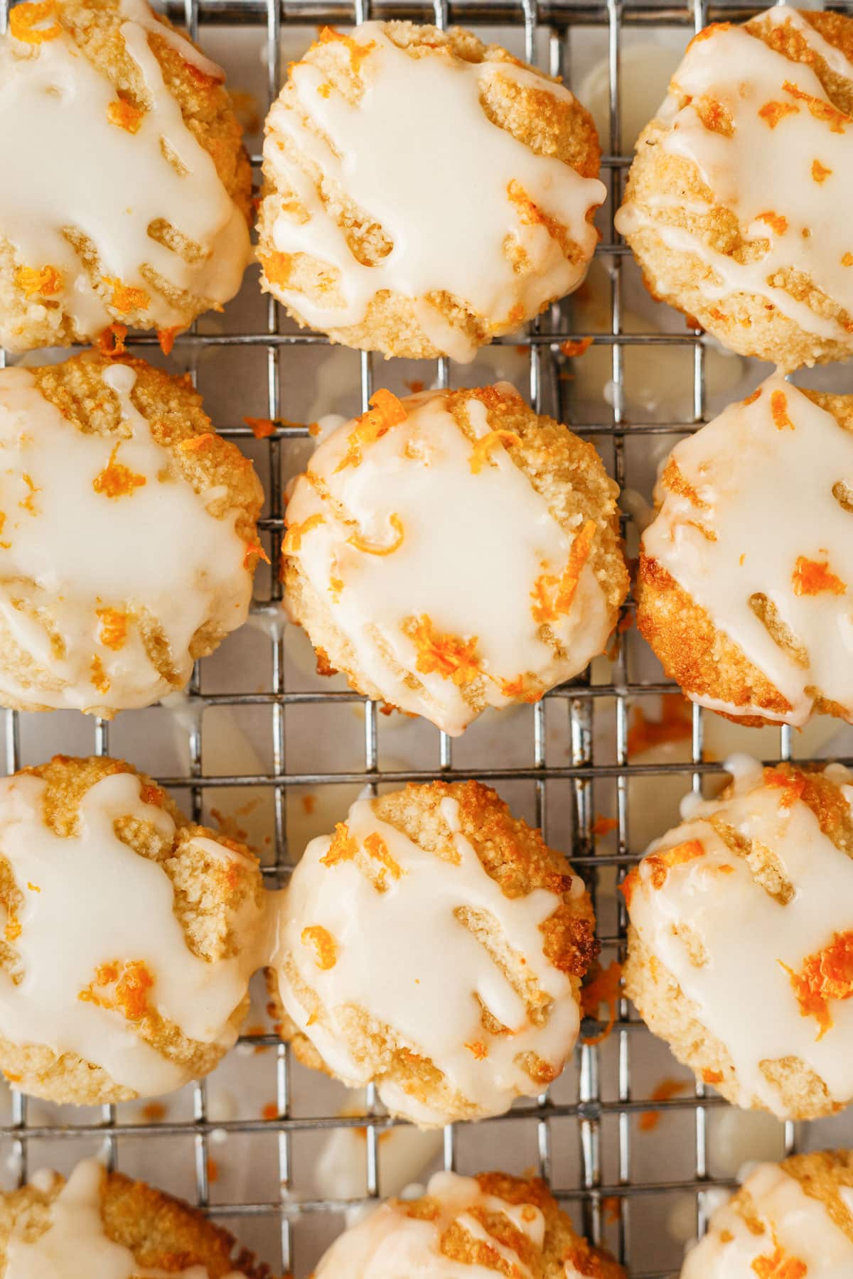 - Once cookies have cooled, drizzle the orange glaze over the top of each cookie. Sprinkle remaining orange zest to the tops of the cookies. Let the cookies sit until the glaze has solidified.