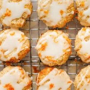 I love that these cookies are small. You can devour one in just two bites! They’re buttery (although they require very little butter) and chewy. And they’re covered in the easiest orange glaze (my very favorite part).