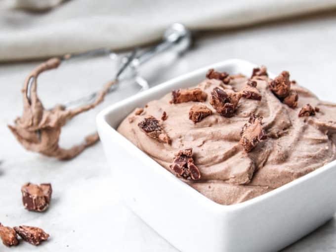 - My favorite way to serve this mousse is as a fruit dip. I add a chopped up candy bar on top to really make it look fun and festive when entertaining! You can also add a dollop of this whipped goodness to the top of another dessert or pancakes. Because why not, right?