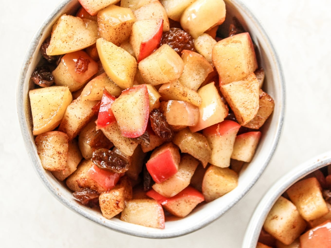 Raisins give this dish additional sweetness. They plump and soften as they’re sautéed so they compliment the tender apples beautifully.