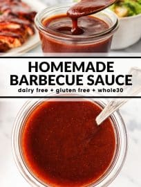 Most store-bought barbecue sauces contain preservatives, strange sounding ingredients, and sugar or honey. Iโm going to show you how easy it is to create a flavorful sauce thatโs refined sugar free, dairy free, and gluten free!