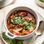 Looking to beef up this soup even more? It doesn't need it but good golly you sure can if you want to! Cauliflower rice would be an awesome addition that would still keep this dish Whole30 compliant and gluten free. (Add it close to the end of the cooking time though because it cooks fast.) If you're not avoiding grains you could also add traditional rice. Me? I enjoy this delicious soup as is.Prefer to make it on the stove? Start by simmering your onion and peppers in 1 - 2 tbsp cooking fat of choice (that's not needed when cooking in the slow cooker). Once they've started to wilt and get a bit translucent add in all other ingredients except for the cilantro. Let it simmer on medium to medium high heat for around 35 minutes or until chicken is cooked through. Shred chicken and stir in your cilantro. That's it! All done in about 45 minutes total.
