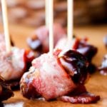 Cut each turkey bacon strip into fourths. Slice once vertically and once horizontally. This gives you bacon that will wrap perfectly around your dates and cook quickly. (Too much bacon will greatly increase your baking time.)