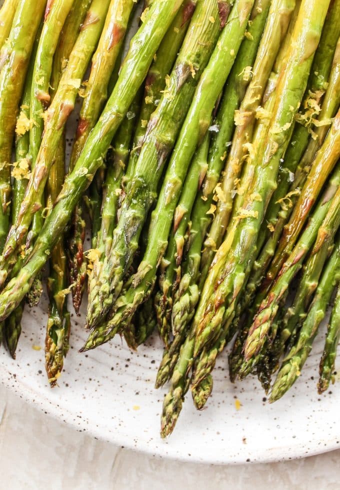 This asparagus quickly roasts in under 10 minutes with olive oil, salt, and lemon juice. It’s a light and delicious side dish!