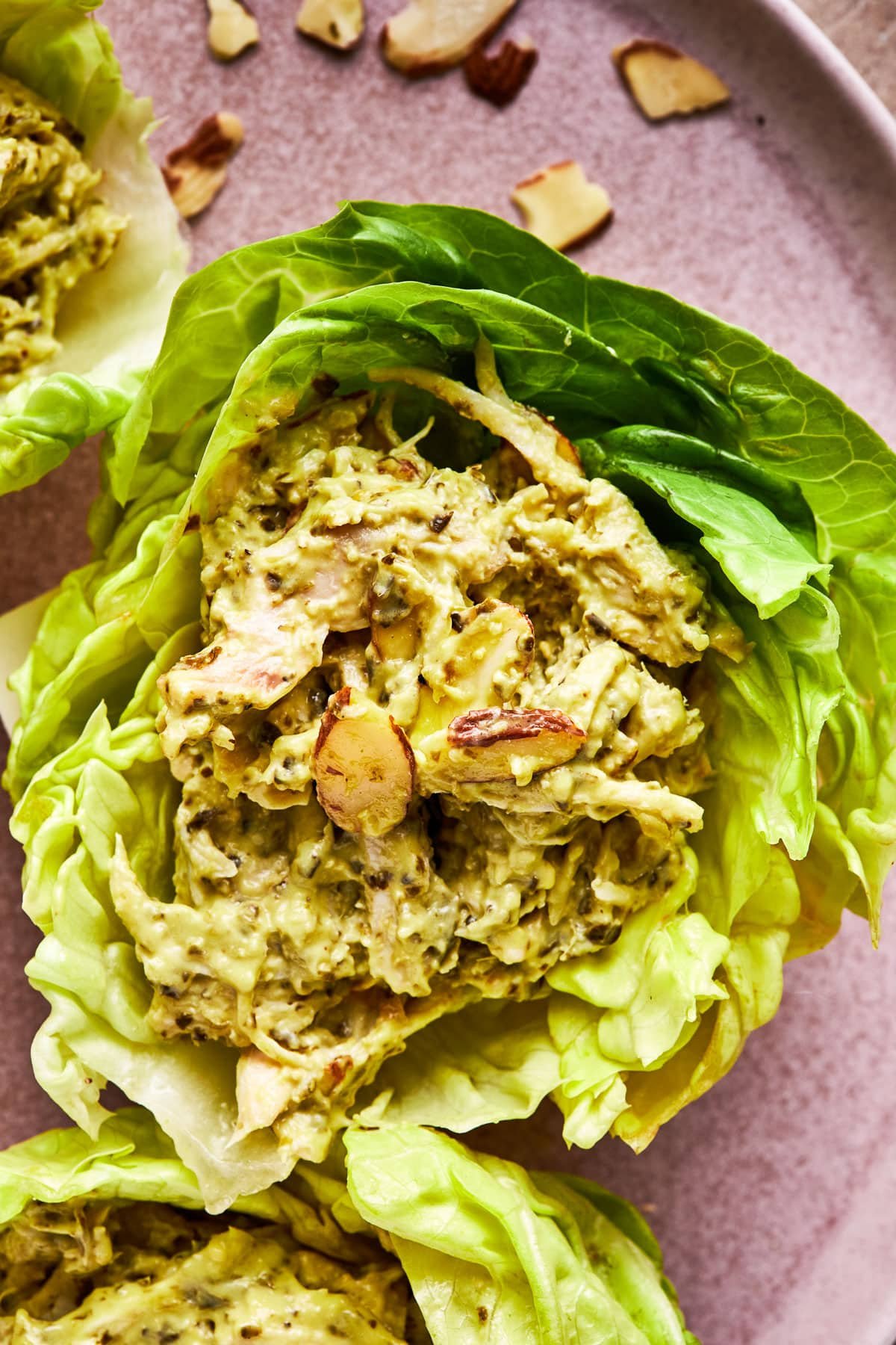 If you’re wanting a low carb option I recommend enjoying in a lettuce wrap with crisp vegetables like broccoli and carrots or on bibb lettuce. Chopped green onion can add extra crunch or slivers of fresh basil can amplify that pesto flavor! I also love this served with a simple salad or fresh fruit. My Fruit Salad with Lemon Poppy Seed Dressing would be a perfect accompaniment.