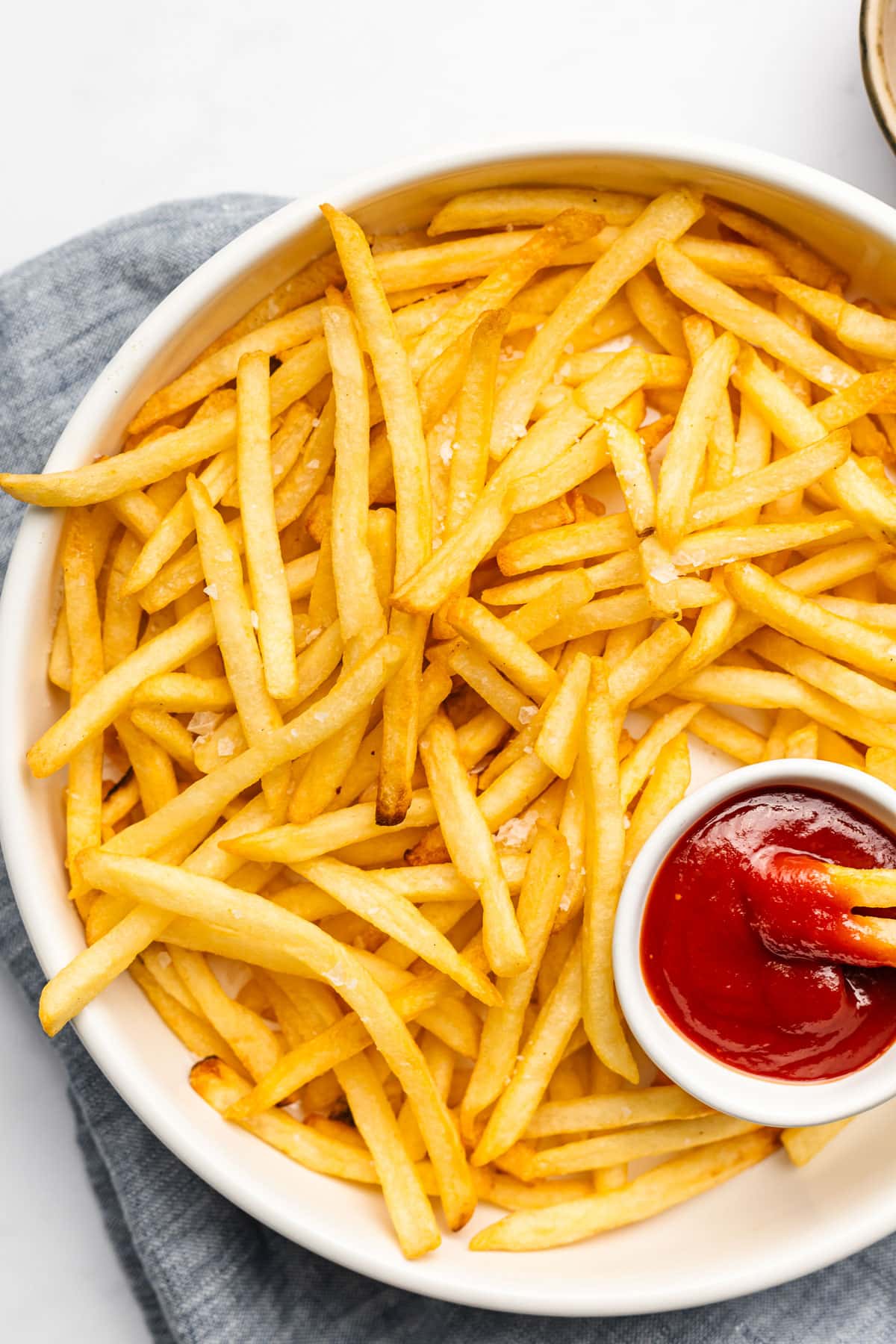 - Salt: Obviously a little salt is a must for french fries. You can also use other seasonings like black pepper, chili powder, paprika, garlic powder, onion powder, and/or italian seasoning to really amp up the flavor. Those are totally optional but fun ways to customize fries.
