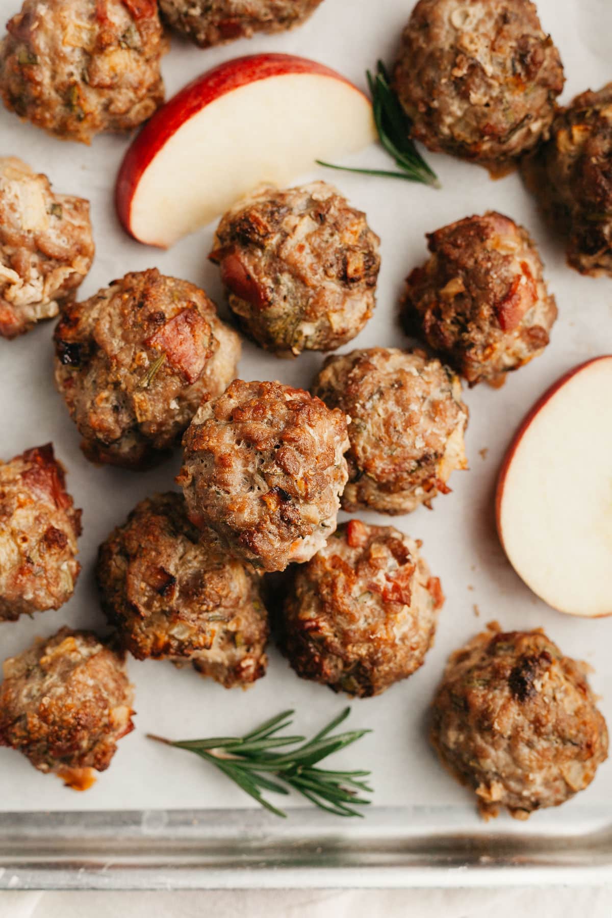 These breakfast sausage meatballs are the perfect combination of sweet and savory. They’re made with ground turkey, baked, and absolutely delicious for meal prep!
