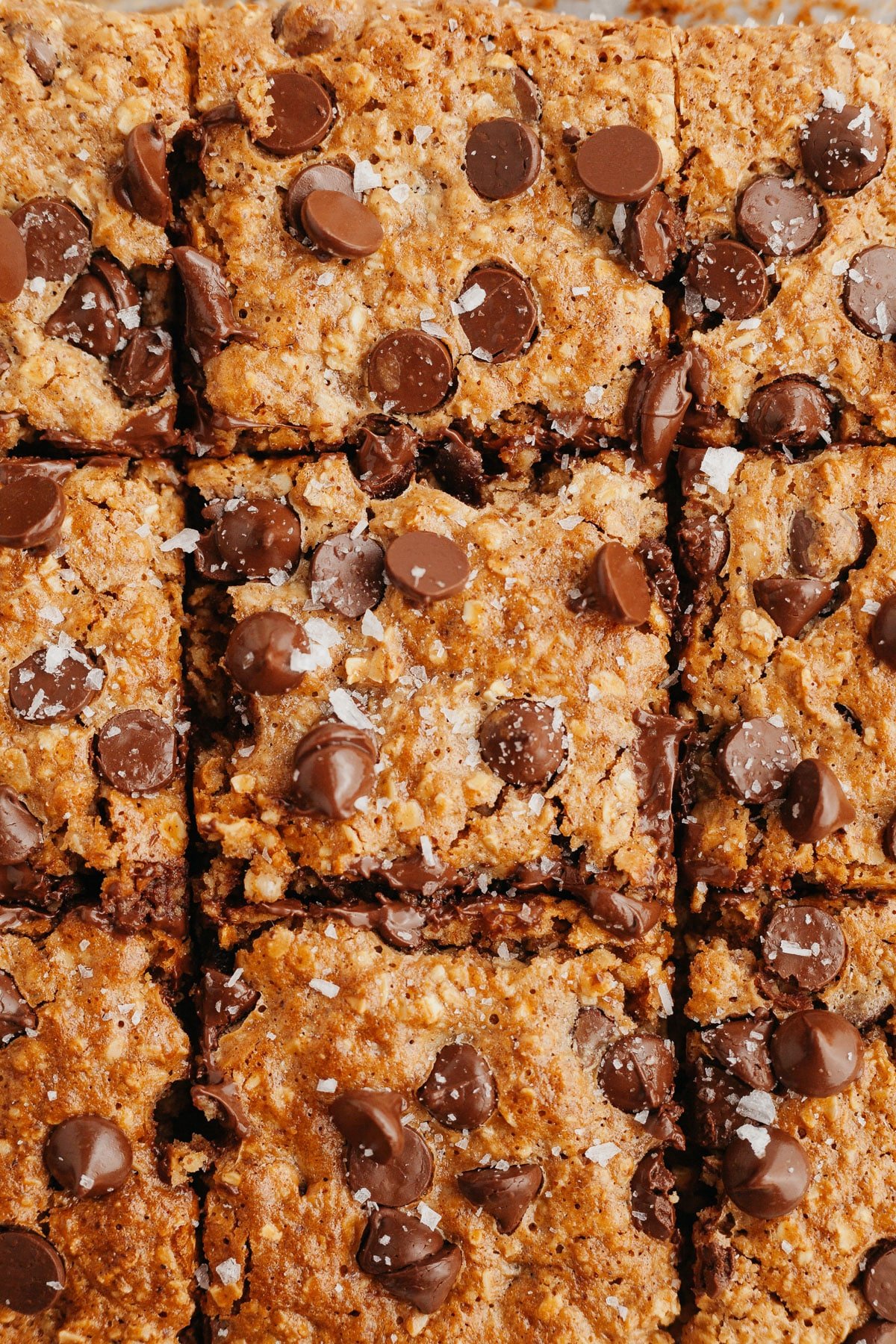 We’re using quick cooking oats in these bars to achieve the perfect chewy bite. Don’t you worry, there are also lots of gooey chocolate chips. The key to that balance of sweet and savory is a sprinkle of flaky salt on top as soon as these beauties come out of the oven.