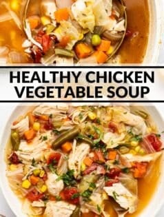 Healthy chicken vegetable soup is an easy recipe that’s loaded with veggies and tender chicken. It’s a great option for meal prep and fast enough to make any night of the week!