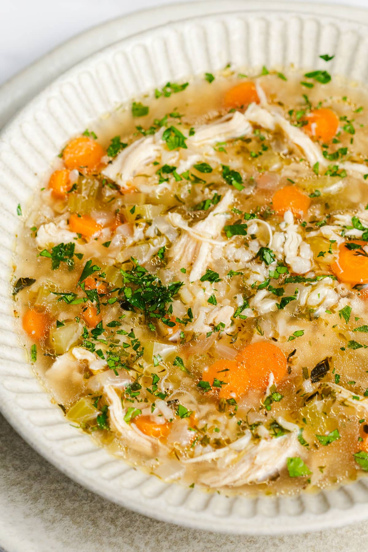 This classic soup is easy to make and perfectly cozy. It’s loaded with the simple flavors of tender chicken and vegetables. Plus it contains brown rice so it’s hearty enough to satisfy. No fancy ingredients. Just good food that tastes oh so yummy.