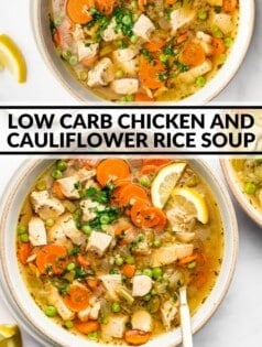 Craving more of my favorite soups made with chicken? Try my 30 Minute Low Carb Lemon Chicken Soup, Salsa Verde Chicken Soup, Slow Cooker Chicken Fajita Soup, or Instant Pot Chicken and Vegetable Soup. Big fan of cauliflower? I suggest my Chicken Fried Cauliflower Rice, Mexican Chicken Cauliflower Fried Rice, Pineapple Cauliflower Rice, Cajun Shrimp and Cauliflower Rice, or Chicken Satay Cauilflower Rice Bowls.