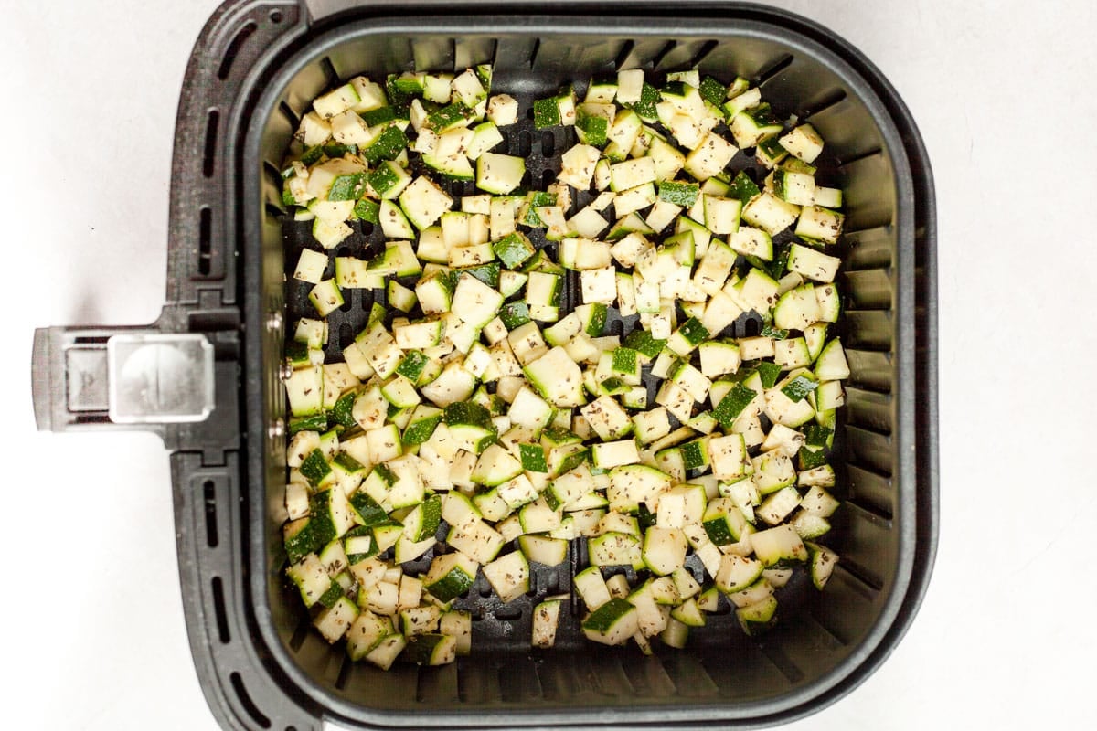 - If your air fryer has a basket youโll want to stop cooking halfway through and shake the zucchini. This keeps the pieces at the bottom from becoming underdone.ย Place the basket back in the air fryer and cook until done.