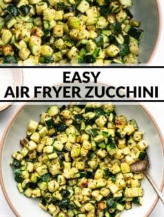 Air fryers are a big deal these days and I’m here for it. It’s such an easy way to prepare healthy food! I use mine daily and one of the recipes I make the most often is this one is this Air Fryer Zucchini. It’s the perfect side dish for any meal! If you’re a fan of roasted zucchini you’ll really love this method too. Air fryer zucchini gives you the same tender pieces you can achieve on a baking sheet in the oven. The best part? The air fryer method is a great way to cook with less oil and in less time!