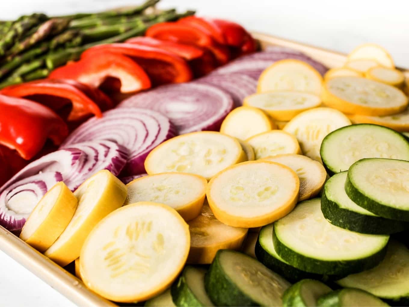 I recommend not marinating the vegetables. If they sit too long in the marinade they can start to break down and soften. I find that drizzling with olive oil and seasonings is the perfect way to infuse flavor while still keeping that crispness.