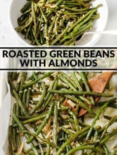 This is my spin on green beans almondine, a classic french side dish and a great way to elevate regular green beans. The name might sound fancy but the cooking process is easy. In this recipe we’re roasting our green beans to really bring out the flavor.