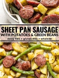 You’re welcome to use whatever fully cooked sausage you prefer. I typically go with this chicken and apple one from Applegate that I find at Whole Foods. I also recommend their fire roasted red pepper and sweet Italian varieties. Another great brand to check out is Aidells if you’re wanting another solid option with clean ingredients. But really any fully cooked sausage will work so if you have a brand you love go with it!