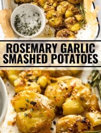 These Rosemary Garlic Smashed Potatoes have a crispy outside with a soft center. They’re so garlicky and good you won’t want to stop devouring them!