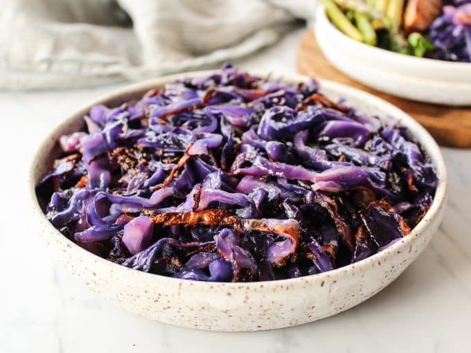 Red cabbage (often called purple cabbage) is a beautiful side dish. I’m teaching you how easy it is to roast it so that it’s tender with crispy edges!