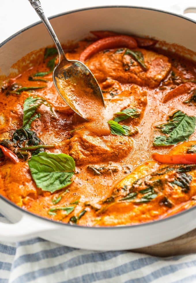 It all started with my Creamy Red Pepper Sauce. That sauce is easy and requires only six ingredients. I love a drizzle of it on basically everything. I’m not kidding. Beef, chicken, seafood… it’s all better with that glorious sauce.